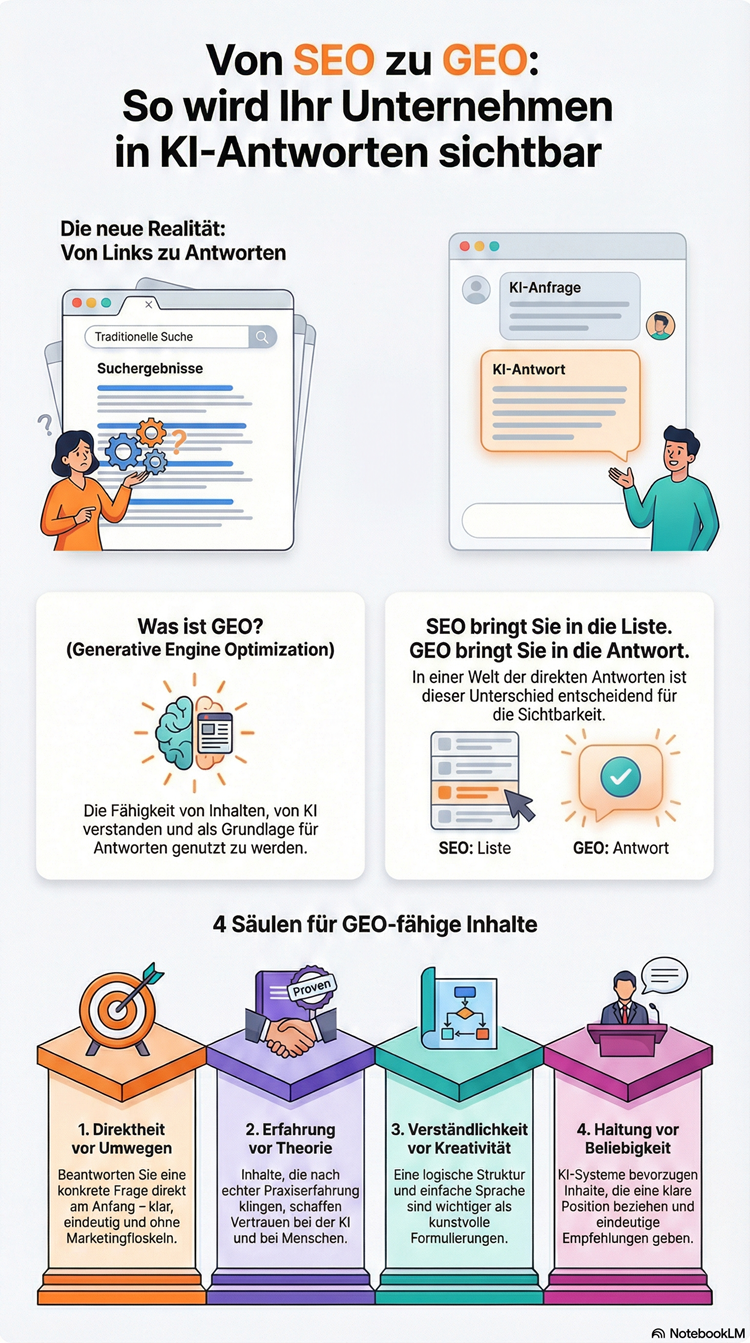 Generative Engine Optimization (GEO): Wie Unternehmen sichtbar bleiben, wenn Künstliche Intelligenz die Antworten liefert