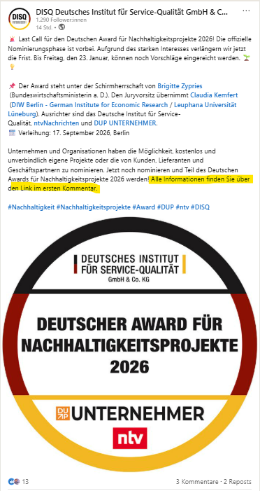 LinkedIn. Facebook. Überall das gleiche Spiel: „Den Link zum Artikel findest Du im ersten Kommentar 👇“