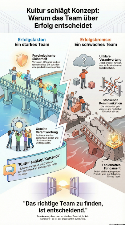 Das Gegenteil ist genauso lehrreich. Wenn Verantwortung unklar ist, Kommunikation stockt und jeder primär für sich arbeitet, wird selbst ein gutes Produkt zur Belastung. Motivation geht verloren, Frust macht sich breit und Fortschritt fühlt sich plötzlich zäh an.